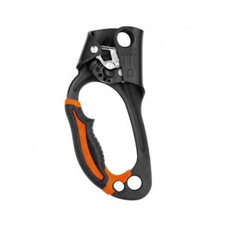 2 trous en haut permettant de prendre la corde dans le mousqueton : coulissement facile en auto-assurage, réalisation de mouflages.